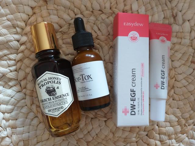Medi-Peel Bortox – this is one of my favorite peptide serums. It is white and milky ampoule which sinks in fast and dries completely. It nourishes the skin, it has a tightening and plumping effect on my skin and it made my forehead wrinkle less deep, so I would say it does work. I do not expect any serum to erase my wrinkles, but this is close. I will repurchase.