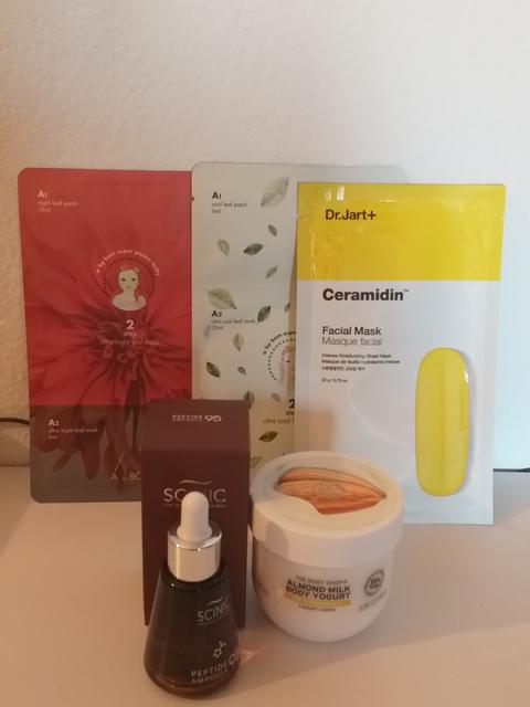 Scinic peptide ampoule – lately I’m into the peptide products a lot!! I tried Klairs midnight blue drops and for the moment, I use The Ordinary Buffet. I see that overall appearance of my skin improved, so I will keep using the peptides serums. This one is highly recommended by the girls on a forum thread I follow. And I got a sheet mask as a gift.