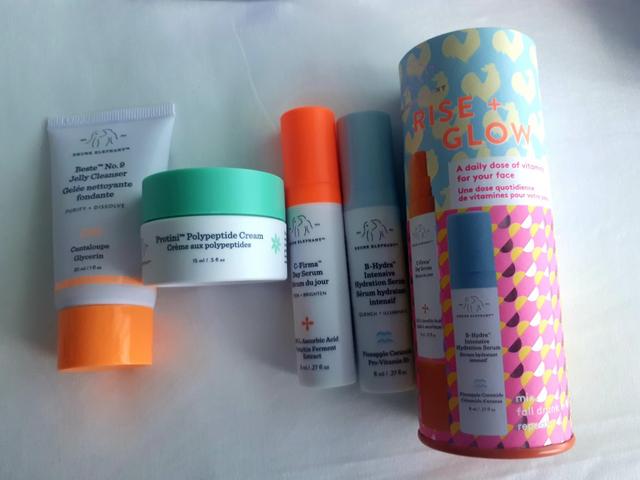 Visiting Sephora was a perfect opportunity to buy some Drunk Elephant items which are intriguing me for quite a while now. I bought a Rise & Glow set that contains 2 mini serums C-Firma and B-Hydra and I picked as a gift two other items (Jelly cleanser and Protini polypeptide cream).